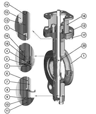 本蝶閥的標(biāo)準(zhǔn)閥座密封使用PTFE和超高分子量的聚乙烯為材料。設(shè)計為蓄能唇式結(jié)構(gòu),不管流體的方向如何,變形后能恢復(fù)到原先的位置與 |