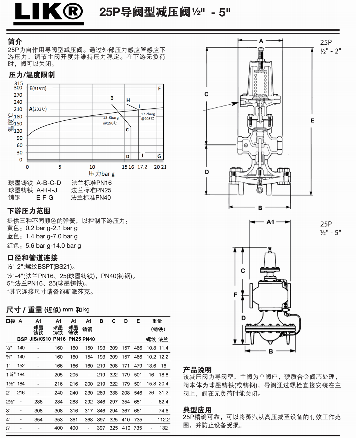 DP143H為高溫的型號,DP163導(dǎo)閥理隔膜式蒸汽減壓閥為全不銹鋼材質(zhì)。DP163設(shè)計(jì)主要用于使用潔凈的蒸汽場合,通常其安裝管道和設(shè)備等均為不銹鋼,安裝于高精度過濾器(25微米)之后.DP163G為軟密封減壓閥型號,用于壓縮空氣系統(tǒng)或其它工作氣體(不適用于氧氣)