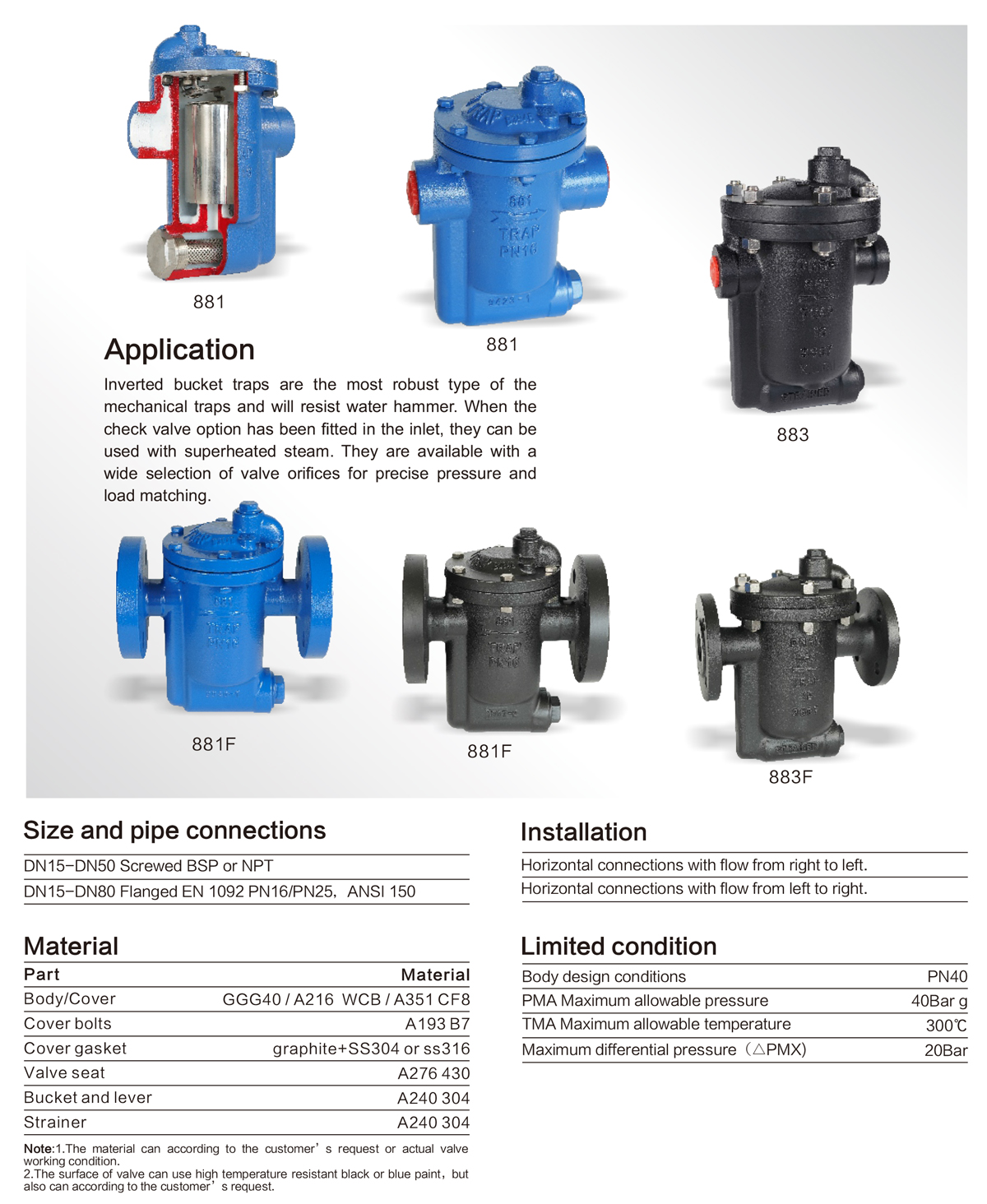 進口進口法蘭疏水閥的開啟和關(guān)閉是根據(jù)凝結(jié)水和蒸汽的密度并來動作的,工作動作準確,可靠。其性能特點為:能夠連續(xù)又能間歇排放飽和凝結(jié)水加熱設(shè)備不會有水積聚,從而獲得高的熱效率;耐水擊倒置桶結(jié)構(gòu)不會因水擊而遭到損壞,使用壽命長;排空氣性能好倒吊桶上設(shè)有溢出排氣孔,可有效地預(yù)防蒸汽氣鎖和空氣氣堵;允許背壓率達85%;維修方便內(nèi)部零件采用不銹鋼制造,均安裝在閥蓋上,并設(shè)有過濾網(wǎng)裝置,日常維護方便。廣泛用于石油、化工、電力、印染紡織、醫(yī)療、醫(yī)藥等行業(yè)的各種蒸汽加熱設(shè)備、蒸汽管網(wǎng)和低過熱蒸汽工況。能夠迅速排除凝結(jié)水,有效地組織蒸汽泄漏。