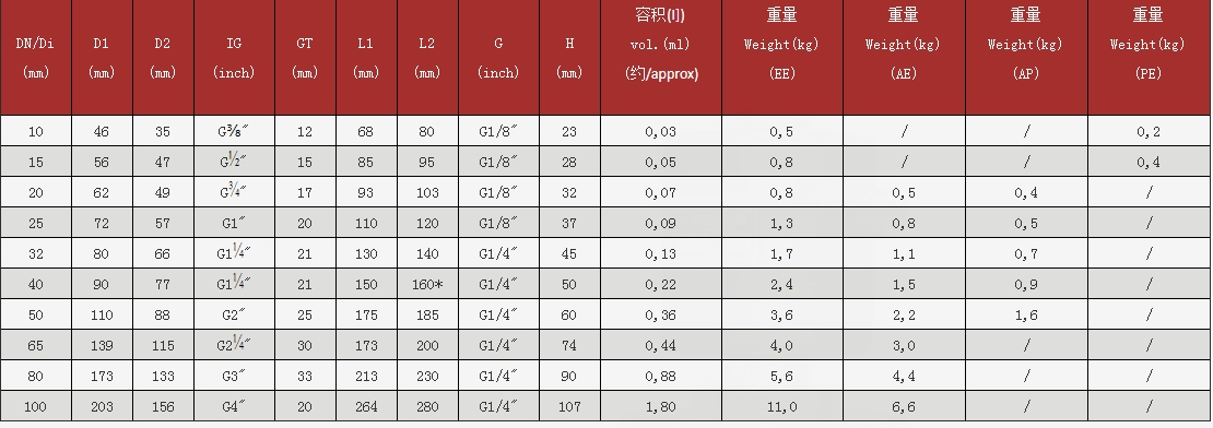 ◆公稱通徑:DN10-DN100