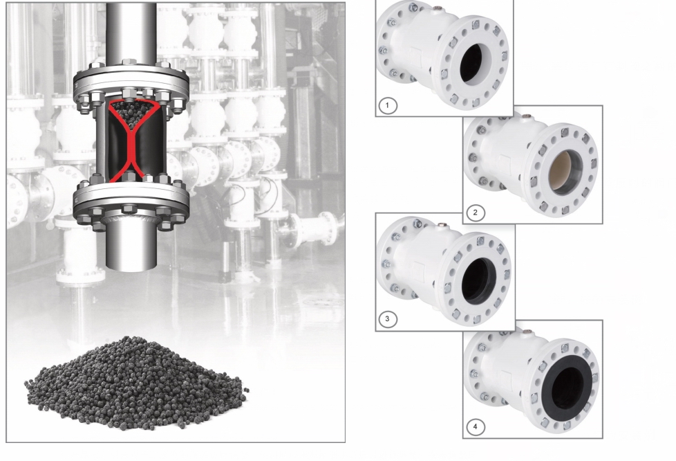 ◆預定的唇形彎折方向不僅可以保證百分之百地關斷介質流,而且,即便有較大的固體顆粒也可被內襯套包覆,并使其完全關斷。