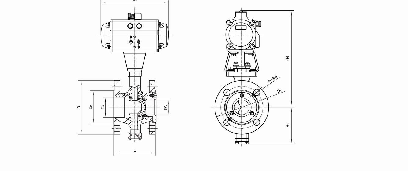 進口氣動對夾式調(diào)節(jié)球閥結構尺寸: