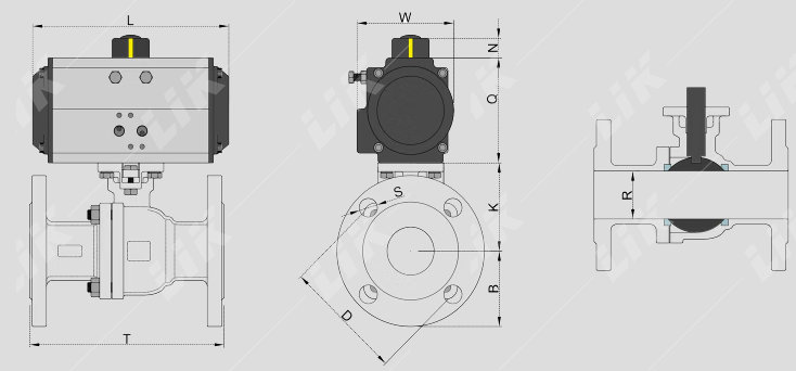 進(jìn)口氣動(dòng)不銹鋼法蘭球閥外形尺寸