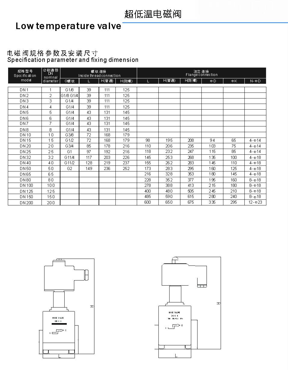 進口超低溫電磁閥通常采用加長桿設計,適用于介質溫度在-40℃~ -196℃的工況,一般為液氦、液氫、液化天然氣以及空氣分離等低溫系統(tǒng),使用介質為液氦、液氫、液化天然氣、液氮、液氧等低溫流體