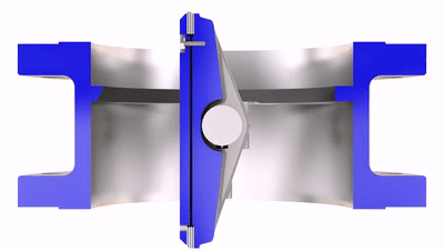 蝶板的閥桿中心與蝶板密封截面按A偏心設(shè)計,蝶閥在開啟過程中,蝶板密封面逐漸脫離閥座密封面;