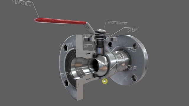 球閥的模型如圖所示,它的啟閉件是位于閥門中心處的球體,由閥桿帶動旋轉實現(xiàn)開閉操作。球閥和蝶閥、旋塞閥一樣都是四分之一轉閥,可以快速啟閉,只需要轉動90°就可以從全開到全關。